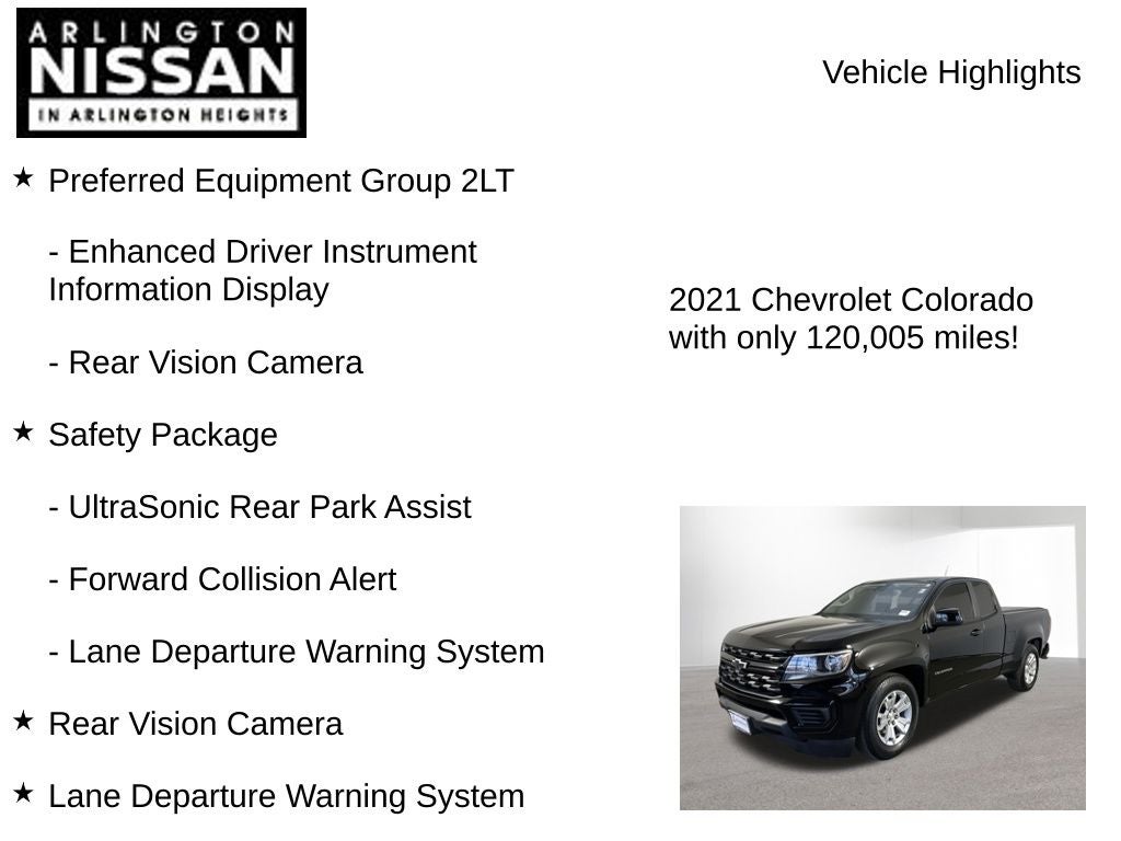 Whether you're tackling tough jobs or embarking on weekend adventures, this 2021 Chevrolet Colorado LT is the perfect companion. Experience the perfect blend of capability, technology, and style – visit our showroom today and let us demonstrate why this Colorado is the ideal choice for your next vehicle.